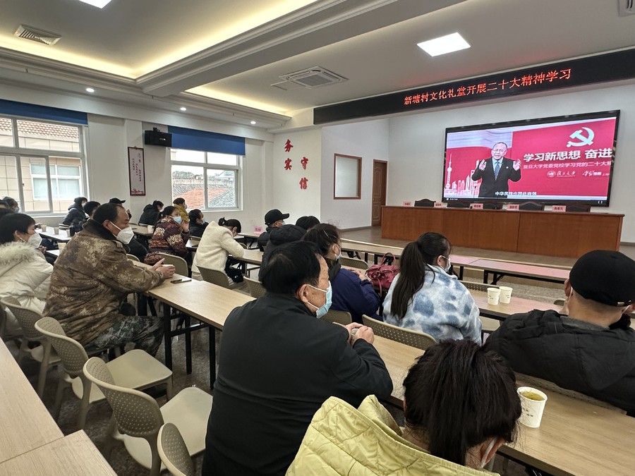 宗漢社區教育中心充分利用慈禮堂、微信群、視頻平臺等網絡平臺學習宣傳黨的二十大精神,定期發布黨的二十大精神相關知識,宣傳報道社區最新學習動態,將學習內容上傳至黨員微信群、居民微信群,打造全天候、開放化的學習平臺,方便黨員群眾以“線上+線下”的形式學習貫徹黨的二十大精神。1月31日,宗漢社區教育中心聯合宗漢街道各村干部群眾在新塘村文化禮堂組織開展二十大精神視頻學習——《學習新思想,奮進新征程》,各社區黨員、流動黨員共百余人學習。