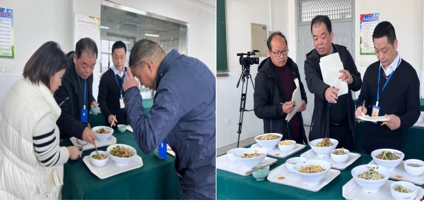 經(jīng)過三小時的激烈角逐,42碗面條出鍋了,評委專家組對逐一品嘗,分別對面條制作、澆頭切配、打面燒制進行打分。“主要通過三大方面來進行打分,當(dāng)然味道、面條的勁性等細(xì)節(jié)也是其中的評判標(biāo)準(zhǔn)。”作為本次比賽評委的諸暨技師學(xué)院餐旅服務(wù)系主任徐杭峰介紹。
