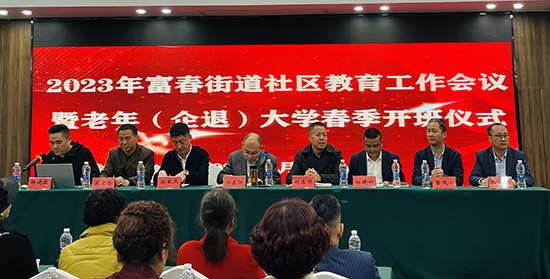 日前,2023年富春街道社區(qū)教育工作會議暨老年(企退)大學(xué)春季開班儀式在卡特蘭酒店召開。富春街道人大工委副主任華森洪,富陽區(qū)教育局教育科長劉忠明,富春街道公共服務(wù)辦公室主任楊曉剛,富春街道公共服務(wù)辦公室副主任董茂方,富春成校校長孫良杰,富陽社區(qū)學(xué)院副院長吳凌華,富春成校副校長黃宏忠,富春街道各市民學(xué)校負(fù)責(zé)人、文化員、富春成校成教專干、富春街道老年大學(xué)師生代表參加會議,會議由富春成校成教處主任楊曉波主持。