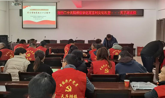 為了推進(jìn)學(xué)習(xí)貫徹黨的二十大精神宣講進(jìn)基層、進(jìn)農(nóng)村文化禮堂,2023年3月25日,湖州市青年宣講團(tuán)成員、安吉縣社區(qū)教育學(xué)院天荒坪分院校長黃晟應(yīng)中共天子湖鎮(zhèn)高莊村黨總支和天子湖成校邀請,在高莊村文化禮堂為該村全體黨員同志作了《學(xué)習(xí)黨的二十大精神全面深刻理解中國式現(xiàn)代化》主題宣講。