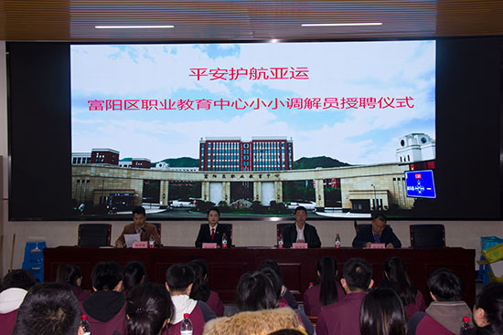 為平安護航亞運,深化“平安校園”建設,減少學生之間的糾紛,促進校園和諧發展,搭建良好的學習、生活平臺,營造融洽、陽光的氛圍,增強學生團隊意識,培養學生化解矛盾、團隊協作、溝通交流及自我展示等綜合能力,并通過不同的形式開展調解活動,讓學生在活動中交流學習、反思改進,促進實踐能力的不斷發展。富陽區職業教育中心以“小小安全官”為基石,誕生了一支新生力量——“小小調解員”。