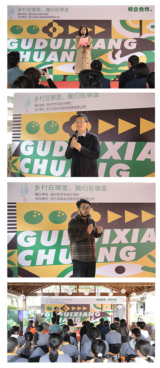 出席此次開(kāi)幕式的領(lǐng)導(dǎo)和嘉賓有:吳興區(qū)宣傳常務(wù)副部長(zhǎng)宋振強(qiáng),吳興區(qū)委宣傳部部委會(huì)議成員——文聯(lián)副主席張寅,湖州文學(xué)院/書(shū)畫(huà)院院長(zhǎng)陸麗萍,吳興區(qū)妙西鎮(zhèn)人大主席吳仁斌,浙江谷堆鄉(xiāng)創(chuàng)旅游發(fā)展有限公司總經(jīng)理蔣曉鋒,湖州藝術(shù)與設(shè)計(jì)學(xué)校校長(zhǎng)方毅瑛,副校長(zhǎng)武紅。學(xué)校相關(guān)部門(mén)負(fù)責(zé)人、工藝美術(shù)專業(yè)教師和學(xué)生一同參加開(kāi)幕式。
