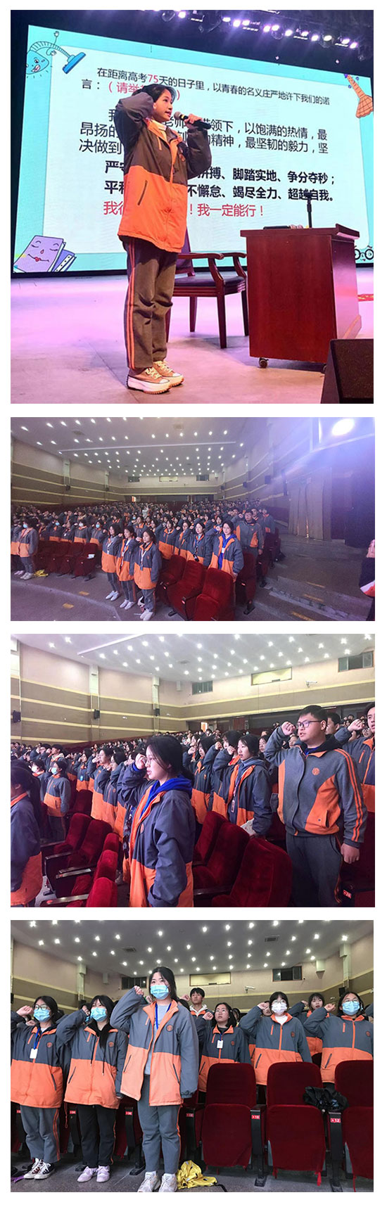 在王佳文同學的帶領下,全體學生進行了莊嚴的宣誓:“我們將在老師的帶領下,以最昂揚的斗志,最刻苦的精神,堅決做到嚴守紀律、奮力拼搏、腳踏實地、平和心態、永不懈怠、竭盡全力……我行!我能行!我一定能行!”整齊的宣誓聲響徹整個演出廳,學子們心中充滿了前行的力量。