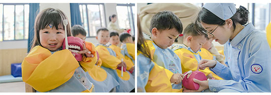 口腔健康是全身健康的重要組成部分,“小牙小牙挨個站,整整齊齊排一排,刷的牙齒白又白,一笑一笑亮晶晶”,親切的湖衛志愿者正在以小朋友喜愛的形式,向大家介紹牙齒的結構、作用及齲齒防護等小知識。隨后,志愿者手把手教孩子們正確刷牙的方法,幫助他們養成愛護牙齒的好習慣。小朋友們認真聽講,積極動手,踴躍參與。牙齒潔潔白,健康頂呱呱。通過這樣有趣的愛牙護牙小課堂,在孩子們心中種下一顆“愛牙護牙,從我做起”的小種子,從小樹立正確的口腔保健意識,人人爭做“愛牙護牙小衛士”。