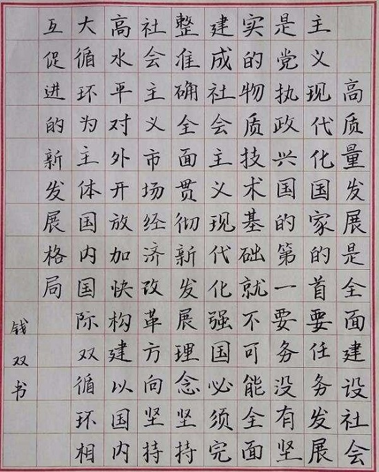 ?硬筆組一等獎(jiǎng):22春建筑專 錢雙 《高質(zhì)量發(fā)展》