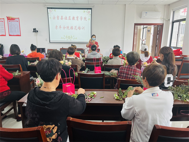 5月12日下午,安吉縣社區(qū)教育學院孝豐分院組織三眼井村民開展插花培訓,邀請安吉縣花藝師姚紀蕓老師授課,來自三眼井社區(qū)的30多位老年學員參加。