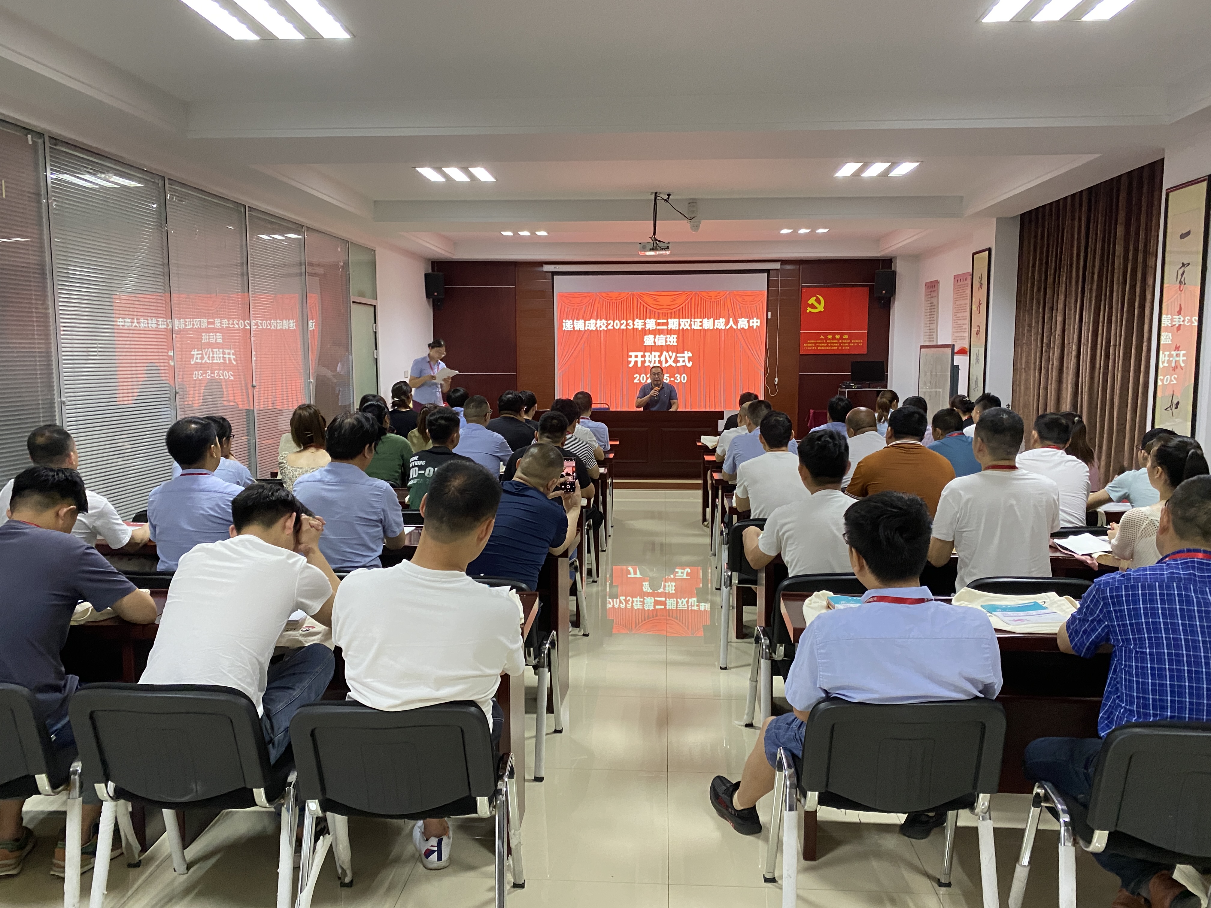 5月30日上午,安吉縣社區教育學院遞鋪分院(簡稱遞鋪成校)與安吉縣盛信辦公家具有限公司合作舉辦的2023年第二期成人“雙證制”高中班舉行開班儀式,五十余名員工參加。
