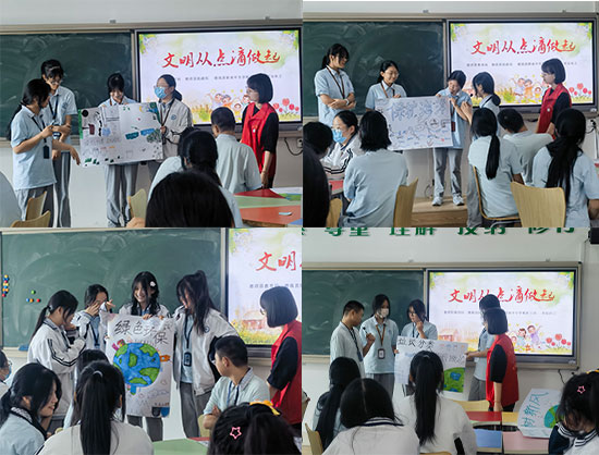 為宣傳與促進學生精神文明建設,提高學生道德素質和公共參與核心素養,9月11日上午,在德清縣教育局和民政局的大力支持下,德清職業中專心理輔導中心和學校社工站合作開展“指尖傳文明 校園新風尚”實踐活動。本次活動由星辰社工徐玉和徐甜來校組織帶領22服裝3+2班同學開展,由專職心理老師崔明敏主持,王美麗老師和談瑩老師共同參與。