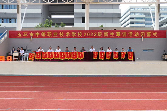 為磨練學生堅韌不拔的意志,培養學生團結拼搏、勇于進取的奮斗精神,在玉環市人民武裝部的大力支持與關心下,玉環市中等職業技術學校2023級高一新生進行為期一周的軍訓,9月22日下午,23級新生軍訓閉營儀式在田徑場隆重舉行。玉環市人武部教練員王偉龍,玉環市中職校副校長吳永勝、熊邦忠,工會主席華平飛,德育處負責人,家校委家長代表,軍訓教官以及23級全體師生參加儀式。儀式由德育處主任金華主持。