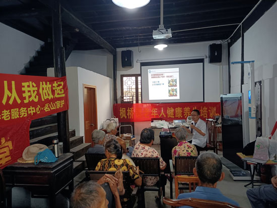 9月28日下午,諸暨市楓橋鎮社區教育學校邀請諸暨市第二人民醫院眼科專家陳旭鋒主任醫師來到楓橋鎮杜黃新村愛心食堂,給老年人帶來養生保健知識。