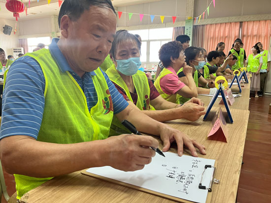 “消防通道不能停車,路上還堆了垃圾。”“你看地上這么臟,油花花的也不對(duì)。”徐師傅和一旁的王阿姨正在商討答案,臺(tái)下的其他隊(duì)員也在低聲討論著。此次比拼,需要參賽隊(duì)伍在指定時(shí)間內(nèi),找出圖片中的各類城市管理問題,并把發(fā)現(xiàn)的問題寫到答題板上,由裁判進(jìn)行判定并打分。比賽中,每個(gè)人都是全神貫注,用他們的“火眼金睛”迅速發(fā)現(xiàn)問題,地面垃圾裸露、雜物亂堆亂放、亂貼小廣告等等,都是大家“找茬”的小目標(biāo)。