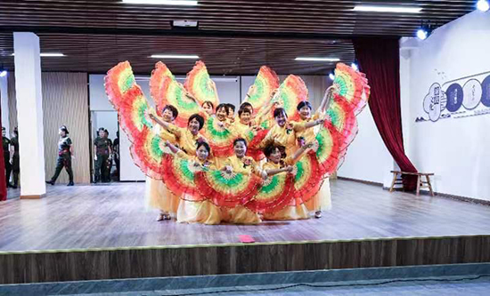 諸暨市楓橋鎮(zhèn)楓之韻藝術(shù)團(tuán)表演的舞蹈《盛世歡歌》首先登場(chǎng),大紅喜慶的服裝、整齊劃一的動(dòng)作、充滿激情的音樂,調(diào)動(dòng)起歡樂的氛圍。楓一村腰鼓隊(duì)演員們身著紅裝、腰掛腰鼓,威武地站在臺(tái)上,鏗鏘的鼓點(diǎn)敲起來(lái),大家跳躍著、打擊著,隆隆,隆隆,激昂的旋律,振奮人心,震耳欲聾的鼓點(diǎn)展示了人們對(duì)現(xiàn)有美好生活的自信與信心,聽鼓點(diǎn)完全分辨不出這竟然來(lái)自一位位農(nóng)村大媽之手。楓橋鎮(zhèn)楓之韻藝術(shù)團(tuán)表演的舞蹈《瀟灑女兵》,颯爽的英姿、端莊的儀容、堅(jiān)定的步伐贏得掌聲陣陣。越劇、歌曲、廣場(chǎng)舞、獨(dú)舞、雙人舞等節(jié)目帶給觀眾一場(chǎng)歡樂歌舞的盛會(huì)。晚會(huì)在全體演員大合唱《我和我的祖國(guó)》中結(jié)束。
