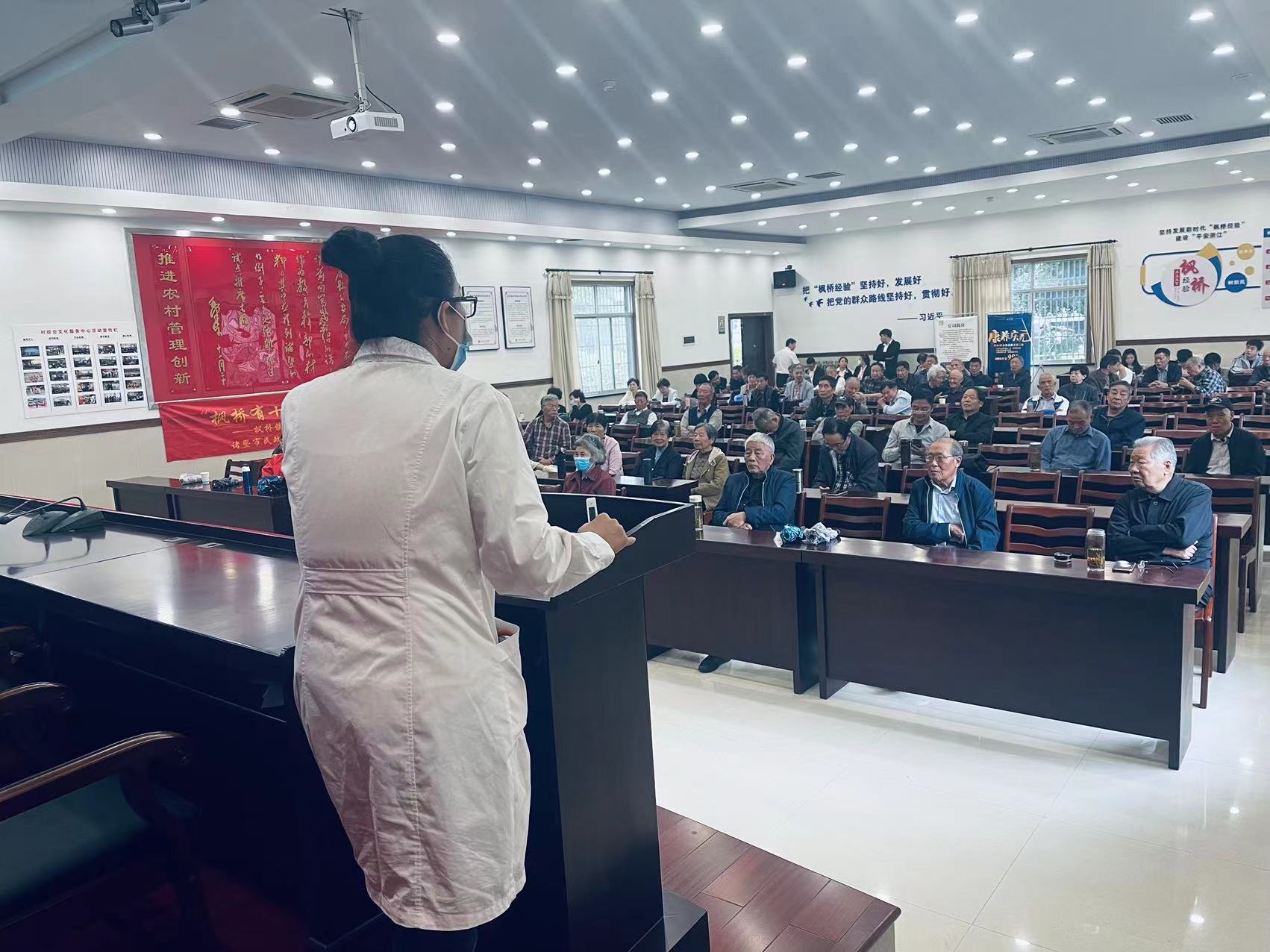 10月13日上午,諸暨市楓橋鎮社區教育學校聯合諸暨市楓橋鎮退休人員管理中心邀請胡慶余堂集團方格藥業中醫調理師、國家注冊營養師、國家二級公共營養師卓越到楓橋鎮陳家社區黨群服務中心為老年人開展養生保健講座。各退管小組組長與代表80余人聆聽講座。