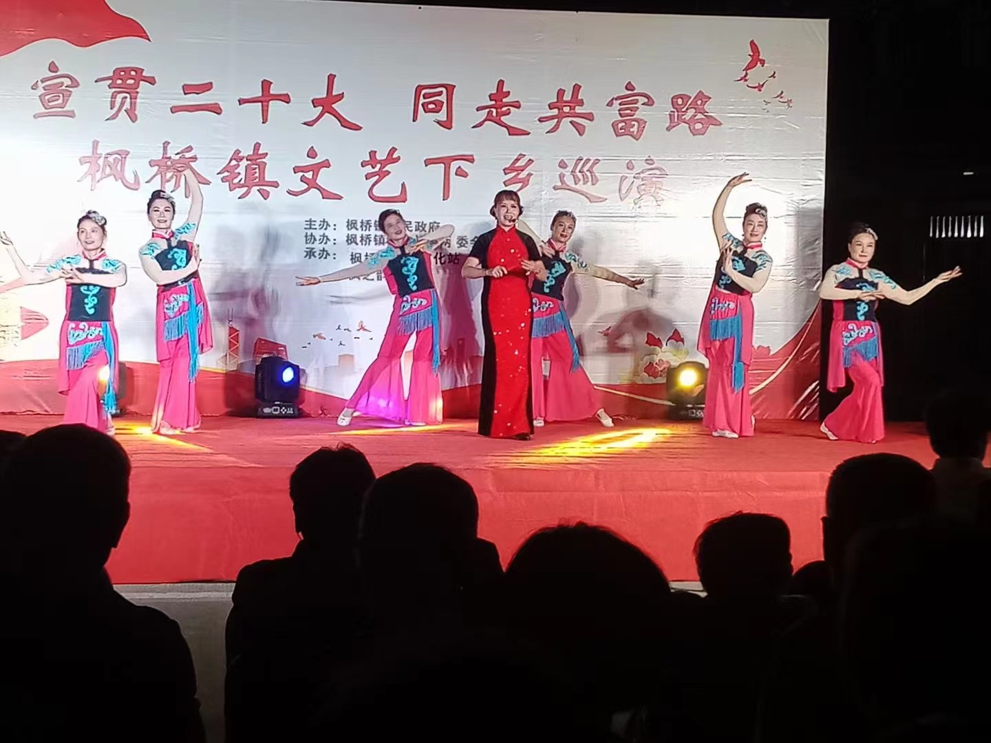 10月17日晚,諸暨市楓橋鎮樓家村臨時搭起一個舞臺,裝飾一新,場上燈光通明,射燈閃爍,臺前坐滿了村民,“楓橋鎮‘宣貫二十大 同走共富路’送戲下鄉文藝巡演”在此進行。