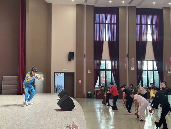 培訓現場,社區志愿者老師先手把手教學員怎樣掌握要領,耐心幫助學員分解動作。在老師的帶領下,學員們配合著充滿韻律的音樂,整齊劃一地揮動手中的健身球,在全身各個穴位上拍打揮舞,動作流暢舒緩,時而跨步、時而轉身,姿勢優美,充分展現了健身球操的獨特魅力。