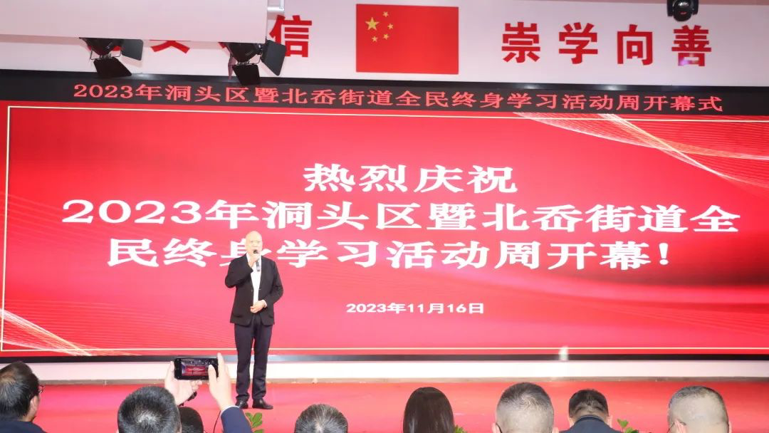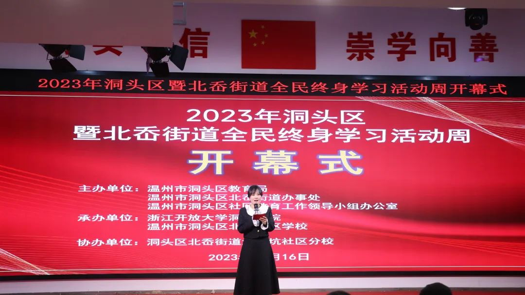 為深入學習貫徹黨的二十大精神,落實教育部關(guān)于廣泛開展全民終身學習活動的要求,加快建設(shè)全民終身學習的學習型社會,11月16日,2023年溫州市洞頭區(qū)暨北岙街道“全民終身學習活動周”開幕式在洞頭區(qū)北岙街道大長坑社區(qū)分校文化禮堂舉行。