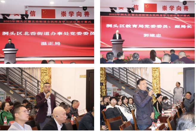 開幕式上,溫州市洞頭區(qū)北岙街道辦事處黨委委員溫正局致辭,熱烈慶祝2023年洞頭區(qū)暨北岙街道全民終身學習活動周開幕。溫州市洞頭區(qū)教育局黨委委員、副局長郭建忠回顧了近年工作,他指出,洞頭教育局堅持初心使命,弘揚海霞精神,樹立“人人皆學、處處可學、時時能學”的終身學習理念,總結(jié)了三個方面成績:終身教育體系逐漸完善、終身教育內(nèi)涵明顯提升、終身教育資源提質(zhì)擴面。