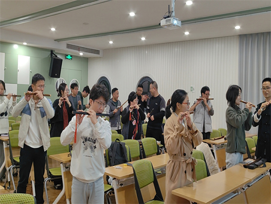 黃老師介紹了笛子的吹奏技巧和發聲原理,教授學員們掌握正確的吹奏方式,不少學員從一開始吹不響到慢慢吹響,逐漸掌握了技巧。
