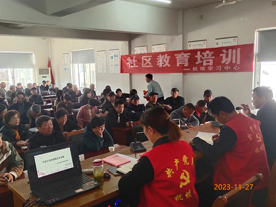 為做好鄉村衛生長效管理工作,提高居民公共衛生意識,改變不良生活方式,樹立起低碳環保的理念,11月27日,安吉縣社區教育學院杭垓學習中心在杭垓村會議室開展了衛生長效管理知識專題講座,62位村民參加培訓。