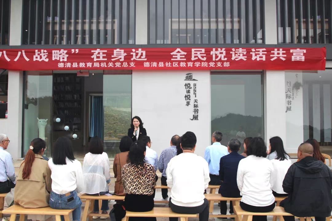 “希望通過今天的主題宣講和讀書分享活動,讓大家走進閱讀、親近書本、浸潤心靈,從讀書中獲得感悟,形成互動、互學、互幫的讀書氛圍,激發(fā)廣大社區(qū)居民的學習熱情,豐富業(yè)余文化生活……”2023年4月21日下午,德清縣下渚湖街道的天際書屋門口,坐滿了來看書、聽宣講的群眾,縣社區(qū)教育學院書記、院長孫志惠正在開展 “‘八八戰(zhàn)略’在身邊 全民悅讀話共富”的宣講活動。這是今年開展的第三次宣講了。