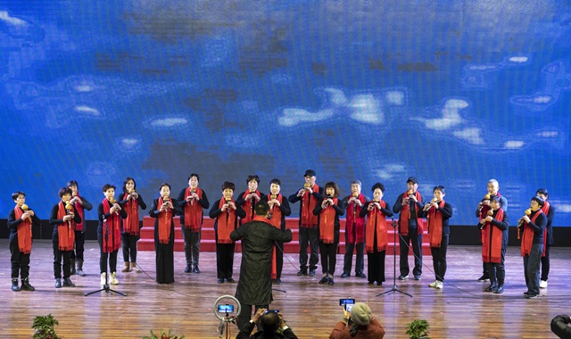 12月26日下午,在喜氣洋洋的民樂合奏《金蛇狂舞》中,嘉善社區學院2023年度老年教育教學成果暨“樂善”藝術服務團匯演展示在高級中學文體禮堂正式拉開帷幕。