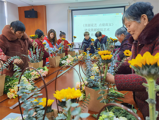 據悉,為了慶祝即將到來的三八節,橫塘村聯系學校,為村里的婦女搭建免費培訓平臺,體驗插花的樂趣。學校立刻進行籌劃,安排教師送教下鄉。