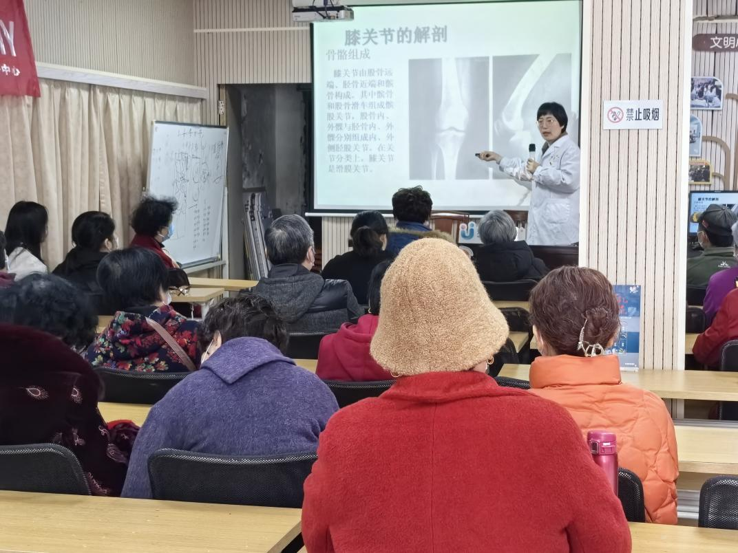 為廣泛普及轄區(qū)內(nèi)老年人骨科健康知識,提高老年人對膝骨關(guān)節(jié)炎的重視程度,以實(shí)際行動(dòng)關(guān)愛社區(qū)老年居民的身體健康,3月8日上午,新碶街道社區(qū)教育中心海棠分中心舉行“膝關(guān)節(jié)骨性關(guān)節(jié)炎的預(yù)防與治療”為主題的健康知識講座,特邀新碶街道社區(qū)衛(wèi)生服務(wù)中心賀丹紅醫(yī)生主講,轄區(qū)40余名微網(wǎng)格長及老年居民聆聽講座。
