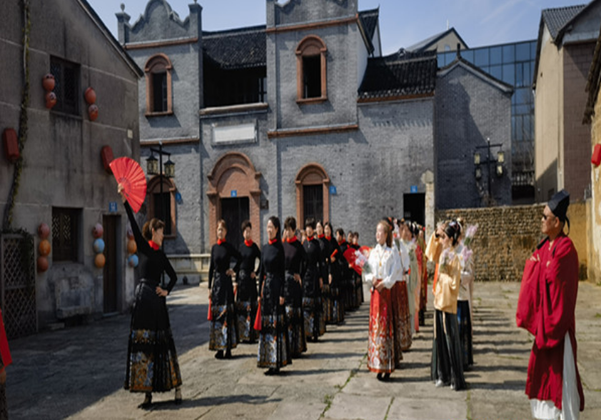 開(kāi)學(xué)典禮結(jié)束后,在老年學(xué)校大門口,裘委員向各位婦女學(xué)員發(fā)送鮮花,并帶領(lǐng)大家集合出發(fā)途徑歷史文化街區(qū)孝豐南門老街、孝子公園等地表演漢服舞蹈與踩街游行,董校長(zhǎng)全程隨行。