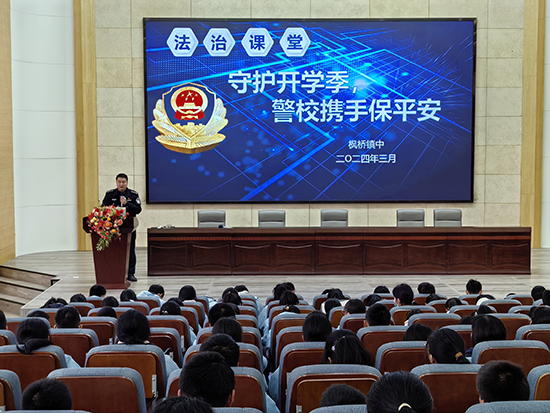 3月13日下午,諸暨市楓橋派出所副所長趙信在楓橋鎮(zhèn)社區(qū)教育學(xué)校的邀請(qǐng)下來到楓橋鎮(zhèn)初級(jí)中學(xué),為七年級(jí)10個(gè)班級(jí)的學(xué)生作關(guān)于“反詐騙和防校園欺凌”的主題講座。