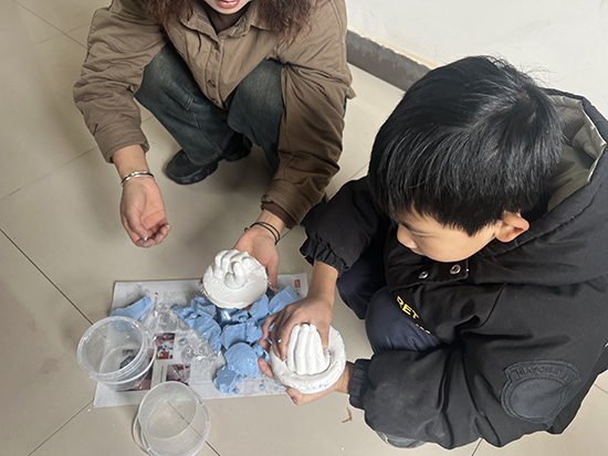青少年非常驚訝,自己做的石膏跟自己的小手簡直一模一樣,甚至手上的細紋、指甲都被完美復(fù)刻,他們都表示怪不得這是克隆手指,太有意思了!(江沈涓)