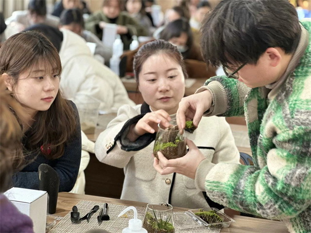 “苔蘚微景觀制作簡單,成本低廉,應(yīng)用廣泛,后期不需要特殊養(yǎng)護(hù)管理也可以長時(shí)間成活。”章老師說。學(xué)員們紛紛表示這樣的培訓(xùn)一舉多得,既掌握了技術(shù)又提高了生活品位。(周亞)