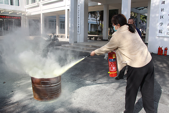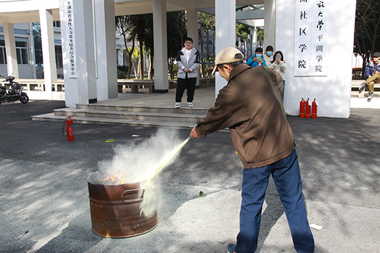 隨后舉行消防安全演練,沈教員手把手帶領老年學員和教職工們練習如何使用滅火器,一提、二拔、三握、四壓,隨著一次次“火起”“火滅”,參與演練的老年學員了解并掌握了滅火器的使用方法。大家紛紛表示,通過此次活動,進一步了解了消防安全知識,還掌握了滅火器的使用方法,極大地保障了我們的安全。