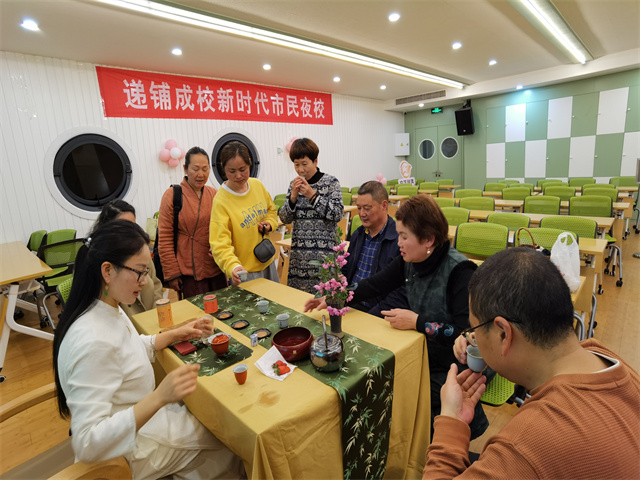 3月24日晚,安吉縣社區教育學院遞鋪分院新時代市民夜校茶藝班開班,來自遞鋪街道各個村、社區的40余位市民參加培訓,邀請安吉縣芷蘭茶藝工作室的樓惠蘭授課。