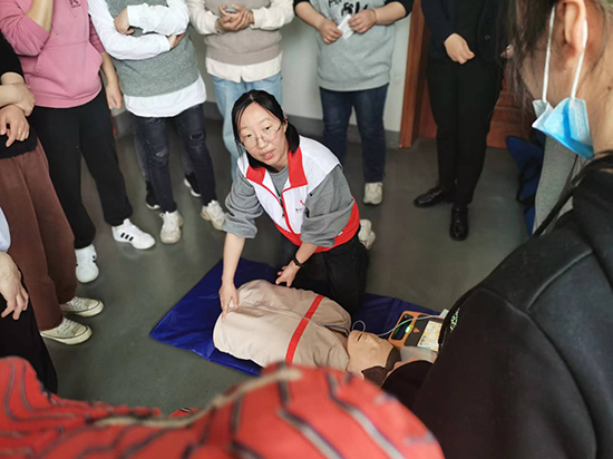 本次活動邀請了多名資深紅十字應急救護師來給大家開展培訓。老師們首先以淺顯易懂的語言,結合實操,將紅十字運動與救護概論、心肺復蘇和AED操作、氣道異物梗阻、創傷救護等知識教授給大家,重點講解了心肺復蘇和AED操作。