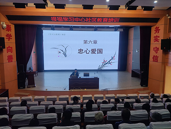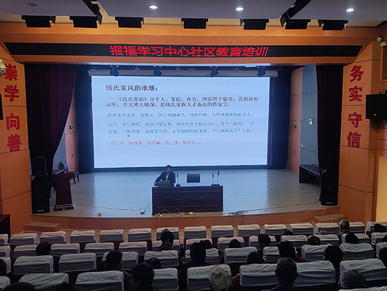 本次培訓由報福老年協會秘書長陳育成主講,他以“忠心愛國”為題為村民開展導讀培訓。在我國傳統文化中,國與家是不可分割的,愛國才能愛家。忠信愛國是優秀傳統道德的價值核心,是中華民族賴以生存和發展的精神支撐。陳秘書長以浙江名人案例來展開教育話題,重點以《錢氏家訓》剖析家教理念。《錢氏家訓》為錢镠的孫子錢俶總結錢镠“起居注”所作,是一部飽含修身處世智慧的治家寶典。錢氏后人秉承祖訓,紹續家風,造就了吳越錢氏一門世代家風嚴謹、人才興盛的傳奇。如眾人熟知的當代學者錢正英、錢鐘書,科技界錢學森、錢三強、錢偉長等,都心系祖國,成為一代典范。