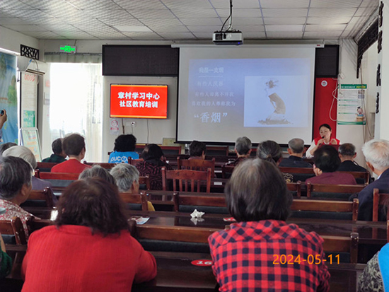 為進一步推動控煙工作的開展,引導群眾踐行文明健康綠色環保生活方式,營造一個健康、清潔、無煙的社區環境,5月11日下午,安吉縣社區教育學院章村學習中心在章村村老年協會開展了“無煙保健康,與愛同行”知識講座,共計53位村民參加培訓。