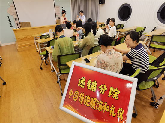 5月26日晚,安吉縣社區教育學院遞鋪分院新時代市民夜校培訓繼續在遞鋪街道文體中心開展活動,來自遞鋪街道各個村、社區的幾十位學員參加活動。其中的中華傳統服飾和禮儀班邀請了安吉縣漢服協會的會長錢群老師授課,講解了端午節的由來和文化傳統,教授學員手工制作艾草香包。