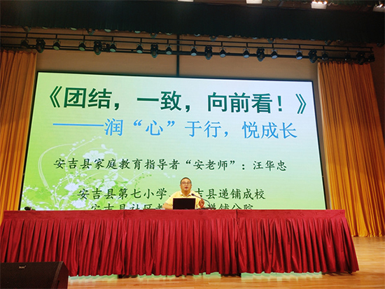 5月29日晚,安吉縣社區教育學院遞鋪分院在安吉縣第四初中大禮堂組織開展家庭教育講座,邀請了安吉縣孝源學習中心的汪華忠副校長授課,來自安吉縣第七小學六年級全體356位家長參加活動。