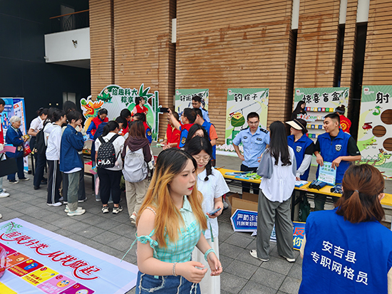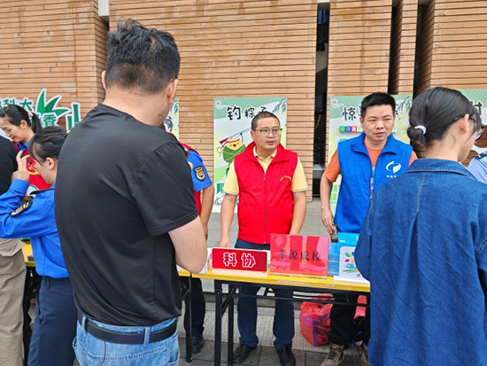 6月6日上午,安吉縣社區教育學院孝源學習中心與安吉縣綜合行政執法局孝源中隊,安吉縣公安局孝源派出所,安吉農商行孝源支行,安吉縣孝源街道安孝社區、科協、綜治辦、總工會、人力社保所、婦聯、團委、殘聯、紅十字會等部門聯合舉辦的“端午游園會——拾‘趣’浙科大,‘粽’享艾香”主題活動在浙江科技大學安吉校區(中德工程師學院)銀杏廣場舉行。