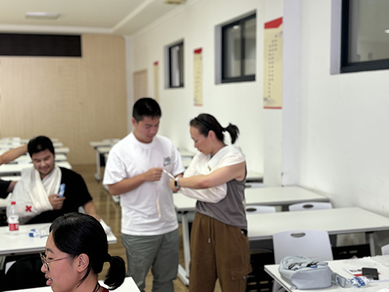 訓(xùn)練營第二天,學(xué)員們在昌碩分院103教室集中學(xué)習(xí)了紅十字運動基本知識、救護知識概論,著重了解了心肺復(fù)蘇及自動體外除顫器(AED)的使用和氣道異物梗阻的解除等知識。授課教師浙江省紅十字會一級應(yīng)急救護師丁柏偉還通過手把手教學(xué)指導(dǎo)各位學(xué)員進行實操練習(xí),掌握常用急救技能。