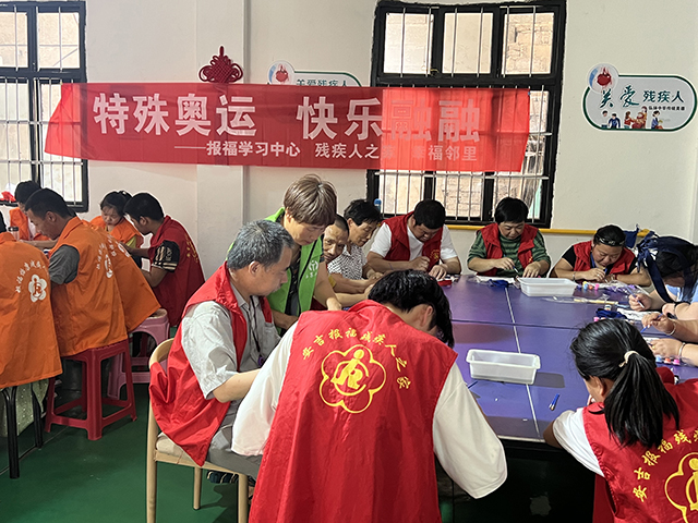 為豐富廣大殘疾朋友的文化生活,迎接巴黎奧運會的到來,近日,安吉社區教育學院報福學習中心聯合幸福鄰里工作站,在報福鎮殘疾人之家開展“特殊奧運,快樂融融”手繪帆布袋活動,以趣味體驗形式激發大家對體育競技運動的熱情,以“更高、更快、更強”的奧運理念激勵殘疾人士自強不息。