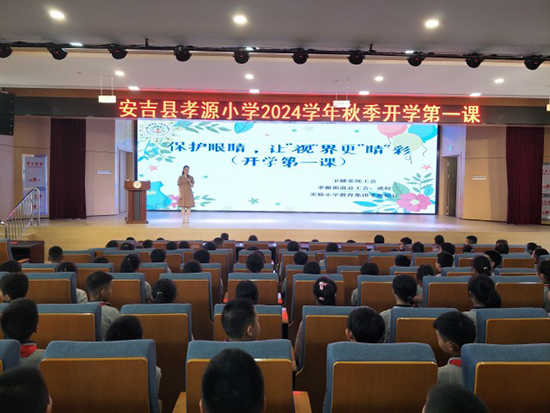 9月2日上午,安吉縣社區教育學院孝源學習中心和安吉縣衛健系統工會,安吉縣孝源街道總工會、科協等部門共同舉辦的“開學第一課”——以“保護眼睛,讓‘視’界更‘睛’彩”和“心向陽光,潤愛成長”為主題的《心理健康和預防近視教育科普講座》在安吉縣孝源小學一樓報告廳舉行,來自該小學401班和501班共計98名學生聽取了講座。