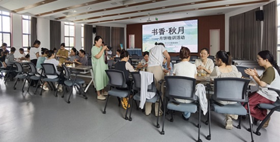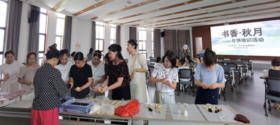 9月10日,安吉縣社區教育學院遞鋪分院組織遞鋪幼兒園教師開展手工月餅制作活動,提前慶祝中秋節的到來。來自遞鋪幼兒園各個教學點的77位教師分批參加活動,安吉縣西式糕點師楊晹老師受邀授課。