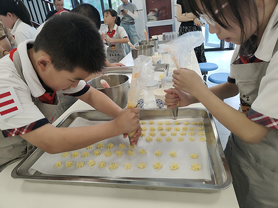 一個半小時的烘培學習中,學生不但學會了曲奇餅干的制作,還增強了動手能力,體驗了手工樂趣。(張孟華)