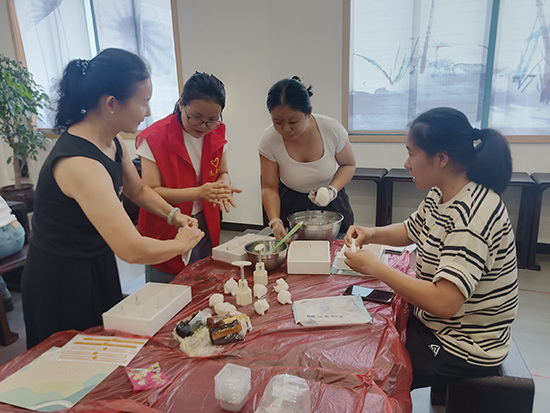 制作過程中,婦女們充分展現(xiàn)出超強(qiáng)的動(dòng)手能力。每一個(gè)月餅都承載著大家對(duì)美好生活的向往。歷經(jīng)一個(gè)多小時(shí)的辛勤努力,一盤盤晶瑩剔透、香氣四溢的冰皮月餅呈現(xiàn)在眾人眼前。望著自己親手制作的勞動(dòng)成果,婦女們的臉上綻放出自豪與滿足的笑容。