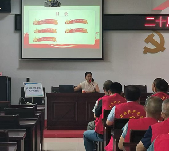 宣講分“土地制度改革激發(fā)農(nóng)村發(fā)展活力”“構(gòu)建農(nóng)村養(yǎng)老服務(wù)體系”“退休黨員發(fā)揮余熱”“農(nóng)民增收拓寬致富渠道”和“基層治理強化黨的領(lǐng)導(dǎo)”五個方面進行。