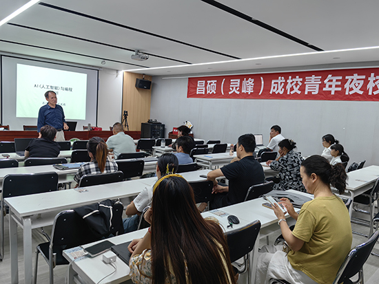 據悉,昌碩成校與村社合作的模式為:成校了解村社資源和居民學習需求,結合學校資源優勢向村社提供培訓青年夜校培訓菜單和宣傳小程序,村社工作人員通過轉發成校的宣傳小程序將培訓菜單傳達到村社居民。“人工智能&編程”培訓班就是這樣產生的,該培訓班昌碩成校邀請項道德老師主講,首次課項老師介紹了人工智能發展的歷史、目前網絡上流行的人工智能平臺,展示了人工智能在工作、學習、生活等方面強大的功能,并教授學員們如何利用人工智能寫出一首好詩。