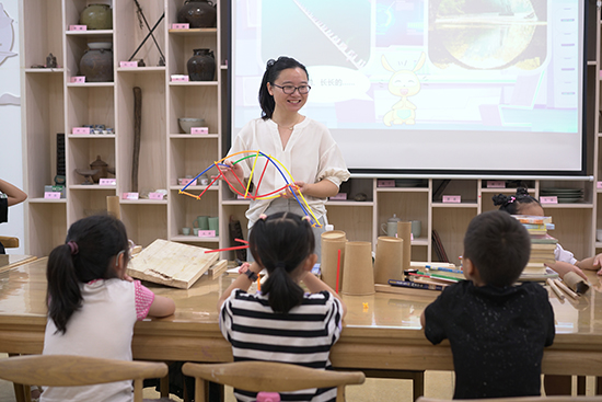 7月初,黃江棋試著深入彭埠街道的每一個(gè)歷史文化角落。在彭埠街道文化站、王家井社區(qū)文教干部的帶領(lǐng)下,黃江棋開(kāi)始與長(zhǎng)者攀談,聆聽(tīng)他們口中的古老傳說(shuō);給孩子們授課,觀察他們對(duì)傳統(tǒng)文化的好奇與渴望。在王家井古井旁,她記錄下老“彭”友們對(duì)于這口古井源遠(yuǎn)流長(zhǎng)的故事的述說(shuō);在鄭家橋邊,她們席地而坐,與居民共同回憶那些橋上走過(guò)的歲月。這些珍貴的第一手資料,為黃江棋提供了豐富的文化土壤,讓她能夠更好地設(shè)計(jì)區(qū)域文化活動(dòng)和課程,以滿足當(dāng)?shù)乩习傩盏那楦行枨蟆?/p>