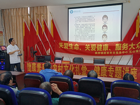 “漱口時突然發(fā)現(xiàn)自己嘴角開始漏水,吃東西時突然有嵌頓感,甚至耳朵后側(cè)疼痛……”諸暨市第二人民醫(yī)院針灸理療科副主任鐘強正在楓橋鎮(zhèn)永安社區(qū)的文化禮堂給老年人開展健康講座。