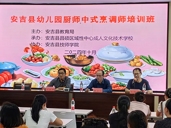 10月18日,“2024年安吉縣幼兒園廚師‘中式烹調師’培訓班”開班儀式在安吉縣昌碩區域性中心成人文化技術學校(安吉縣昌碩成校)開班。此次培訓班由安吉縣教育局舉辦、安吉縣昌碩成校承辦,并得到了安吉縣技師學院的大力支持。